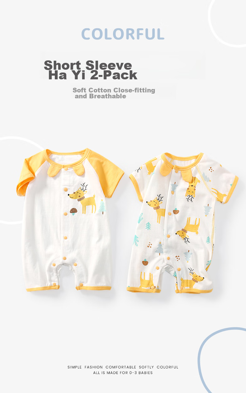 **Description:** COLORFUL, 2-pack short-sleeve baby shirts, made of soft and breathable cotton for ultimate comfort. Simple, fashionable, and softly colorful, designed for babies of all sizes.