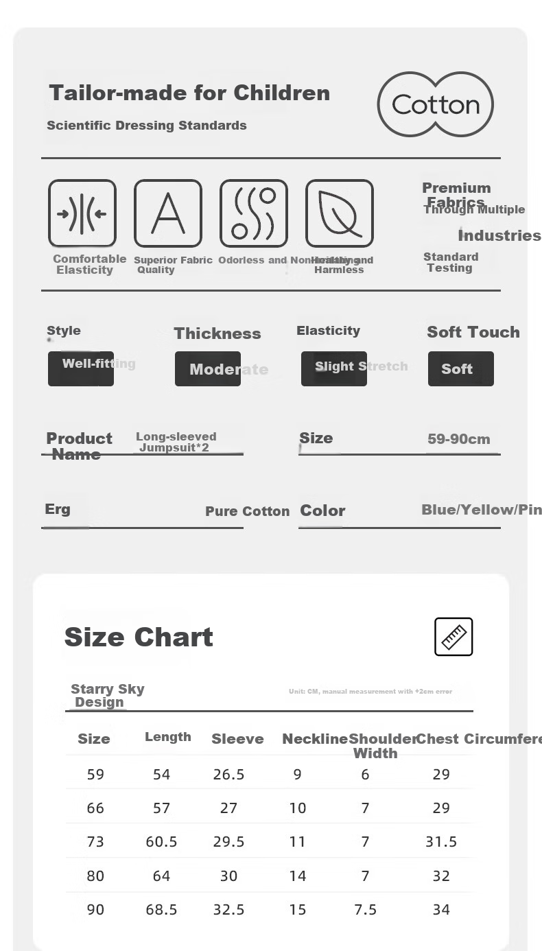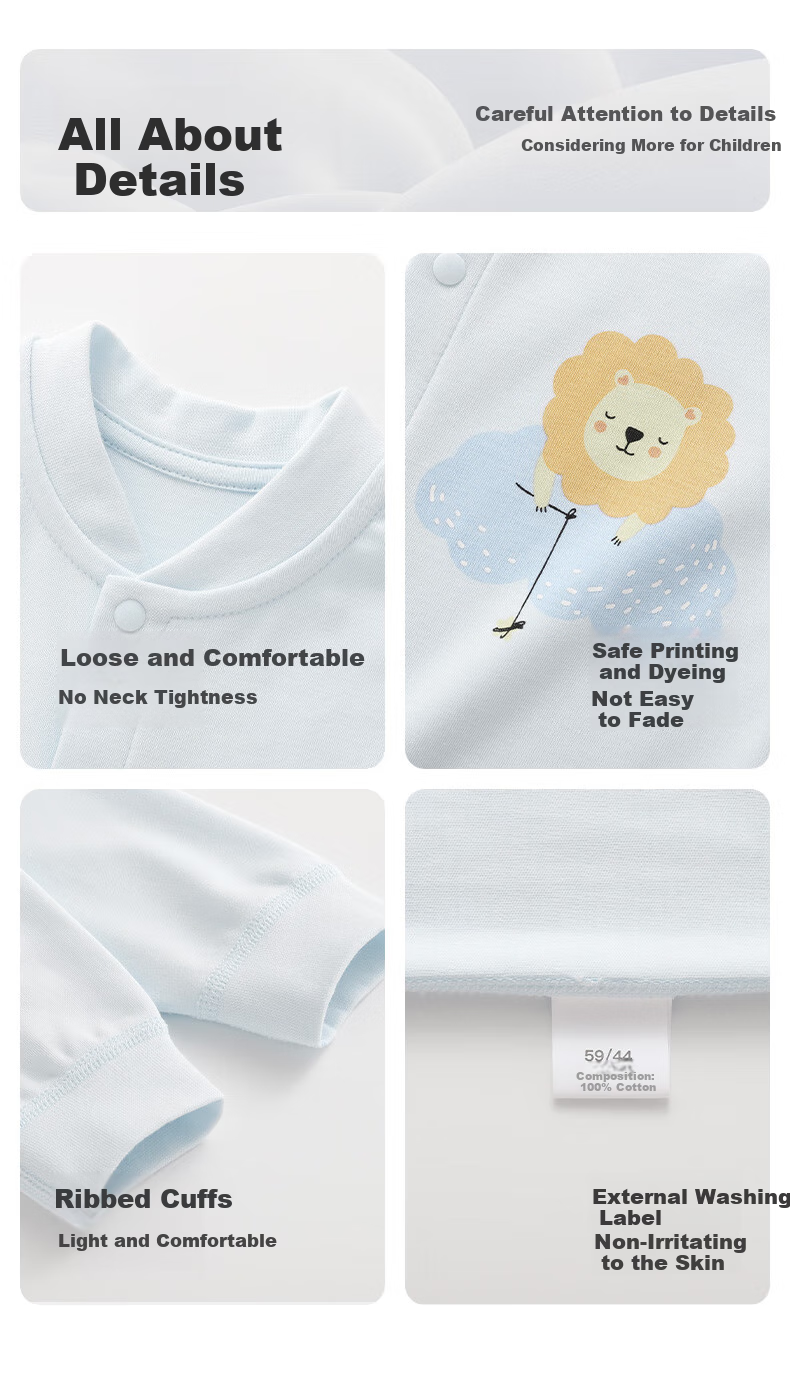 - U-shaped button crotch for easy dressing and undressing, offering ample space and comfort without constraints.