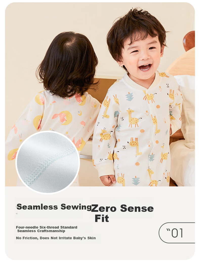 - Four-needle six-thread standard boneless craftsmanship for a frictionless feel on baby's skin.