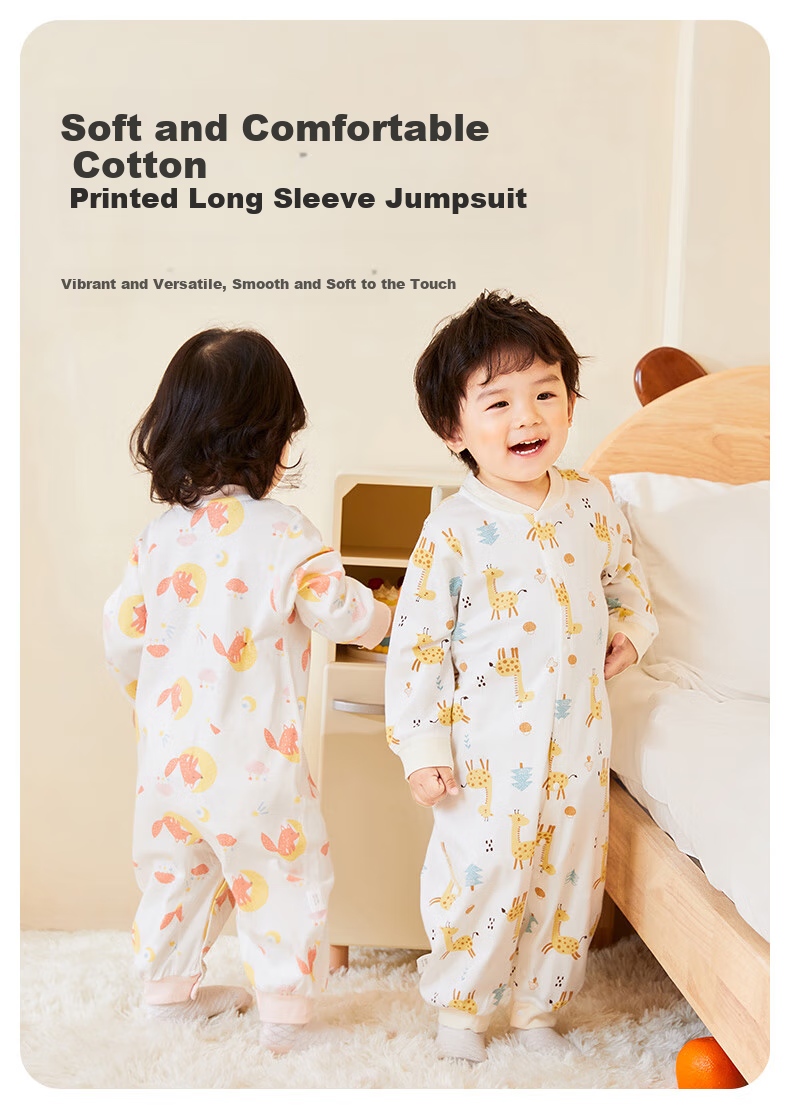 **Description:** Printed long-sleeve bodysuit, vibrant and versatile, with a smooth and soft touch. Enhanced breathability that allows the skin to breathe freely, preventing sweat and providing comfort for babies to crawl and sit comfortably.
