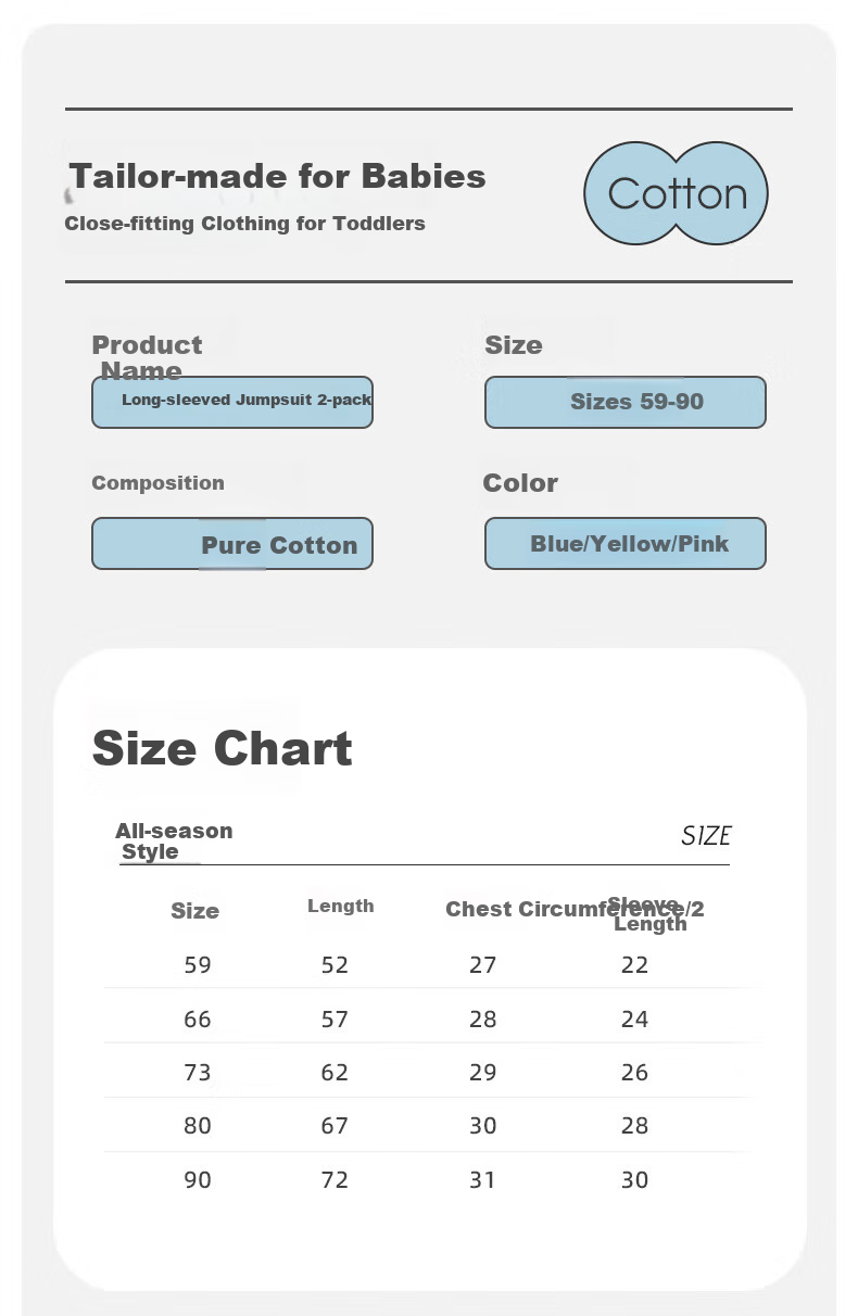 **Packaging:** Includes 2 pieces of long-sleeve bodysuits