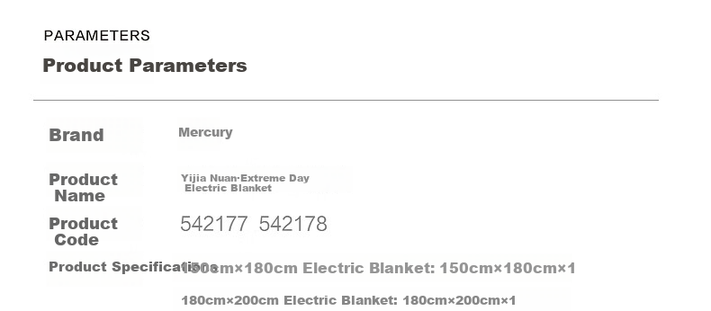 **Brand:** SHUIXINGHOME, MERCURY ELECTRIC BLANKET WARM AND SAFE