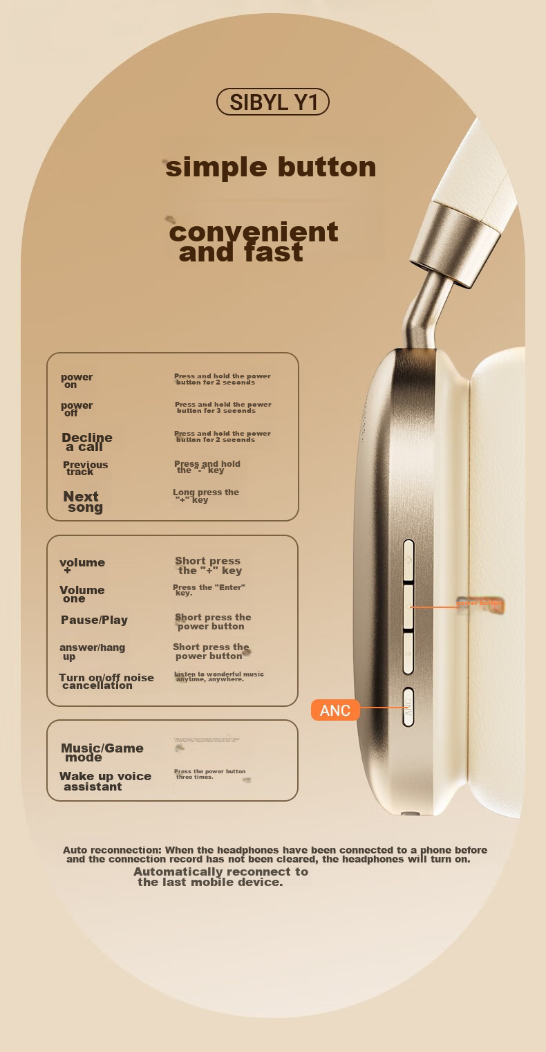 **Controls:** Easy-to-use buttons for power, volume, playback, calls, ANC, and mode switching