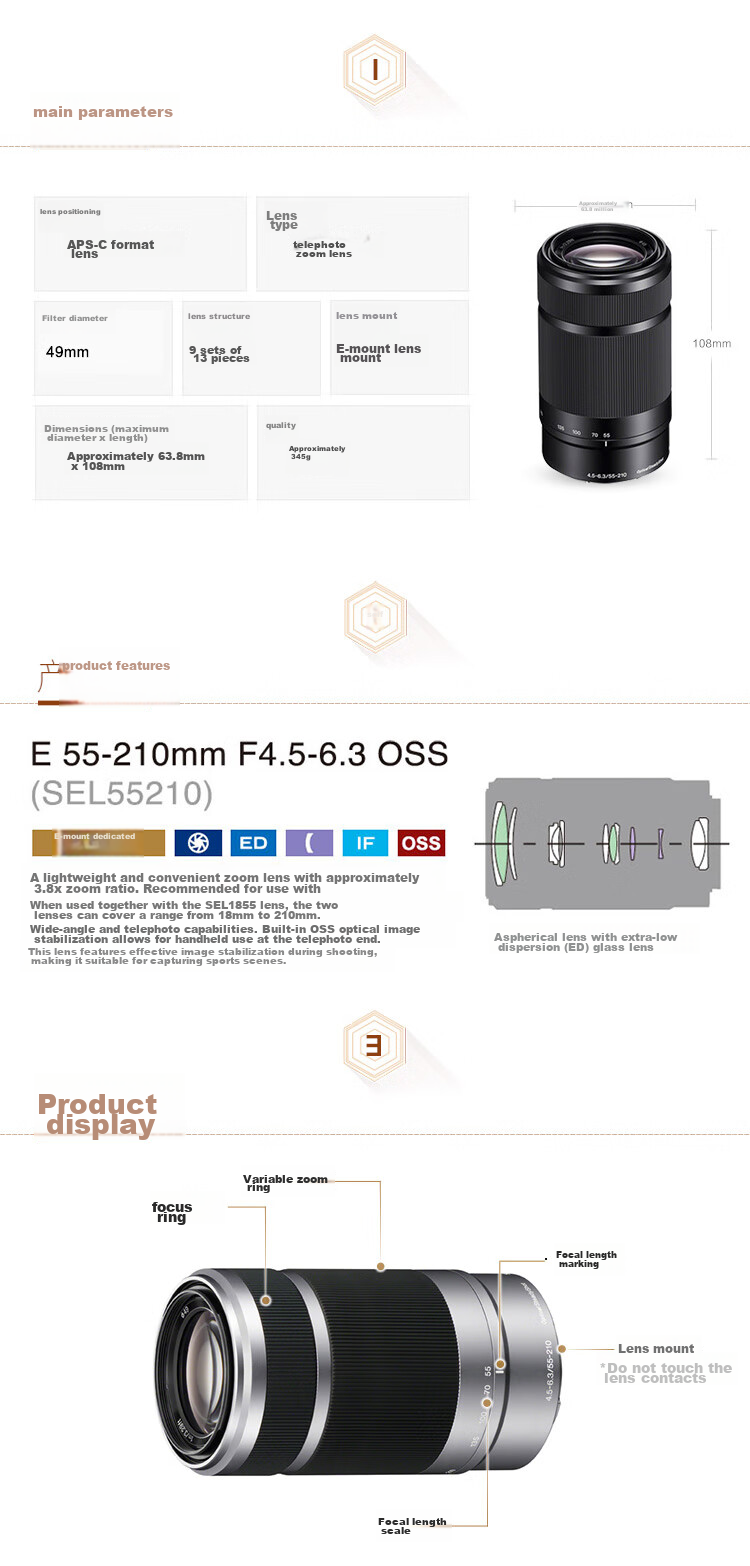 Compatibility: Designed for E-mount cameras, recommended for use with SEL1855 lens for a focal range of 18mm to 210mm