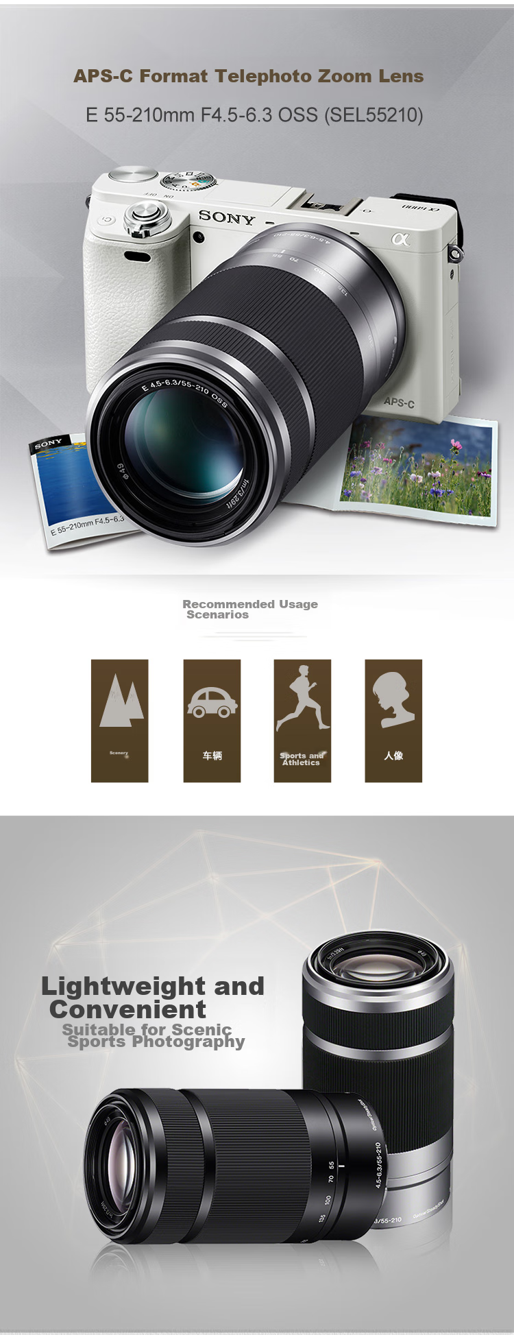 Note: The E55-210mm F4.5-6.3 OSS lens is suitable for capturing sports scenes and offers a versatile zoom range for both wide-angle and telephoto shots.