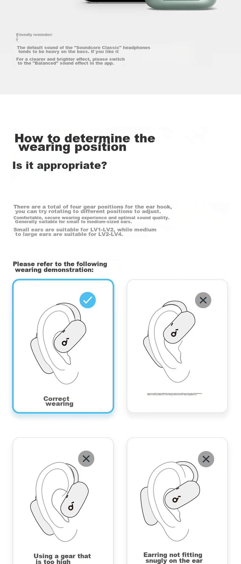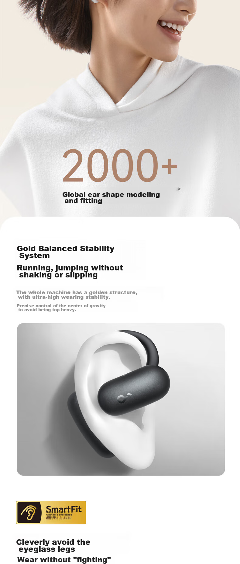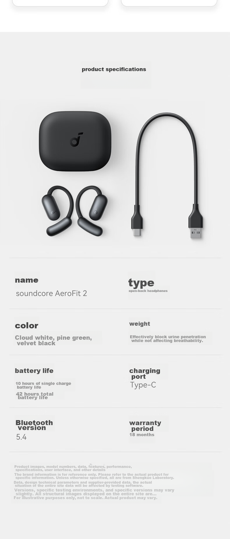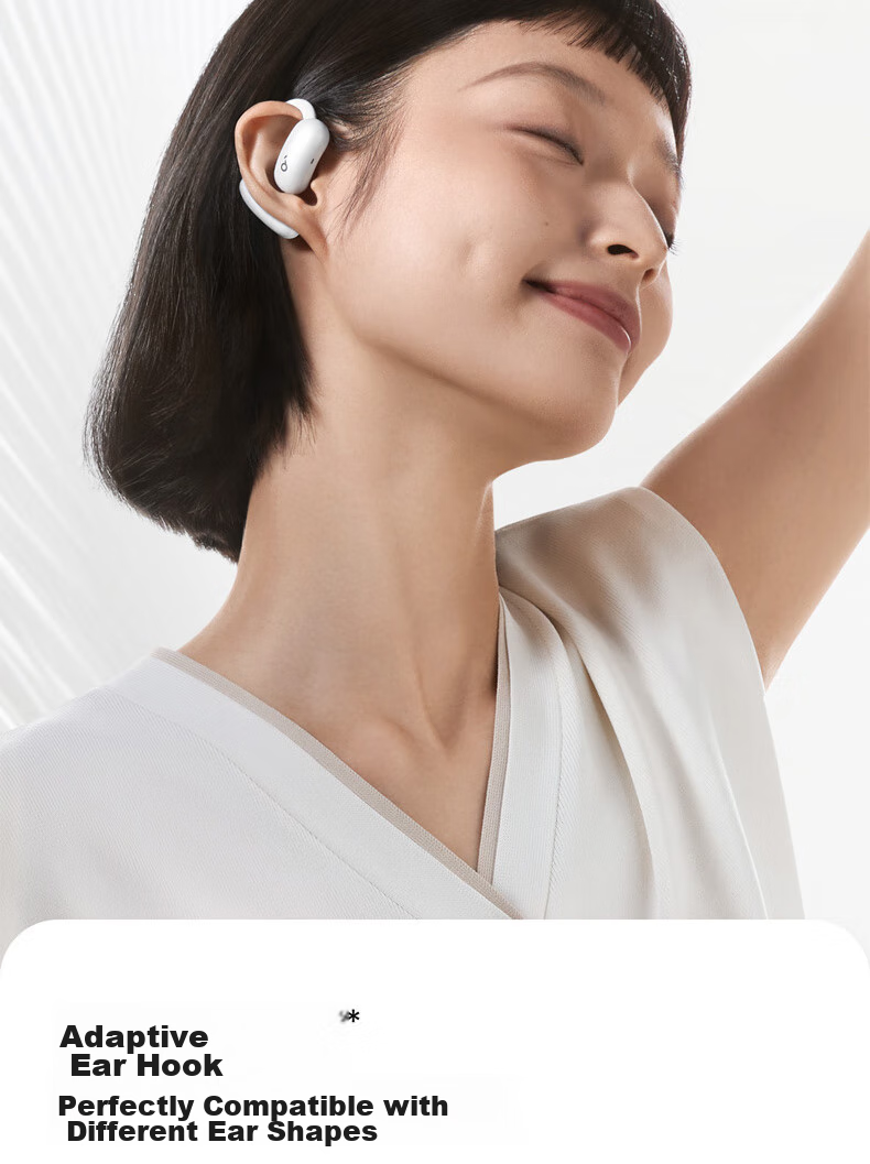 The SoundCore AeroFit 2 earphones feature a unique design with a focus on comfort, stability, and premium sound quality. The innovative BassTurbo chamber enhances bass performance, while the Hi-Res Gold Certification ensures a true-to-life audio experience. With advanced features such as AI translation, directional acoustics, and adaptive ear hooks, these earphones are designed to elevate your listening experience in any environment. The sleek and stylish design, along with customizable EQ settings and touch controls, make the AeroFit 2 a versatile and high-performance audio accessory. Please note that product specifications and features may vary slightly based on testing conditions and software versions. For accurate information, please refer to the actual product.