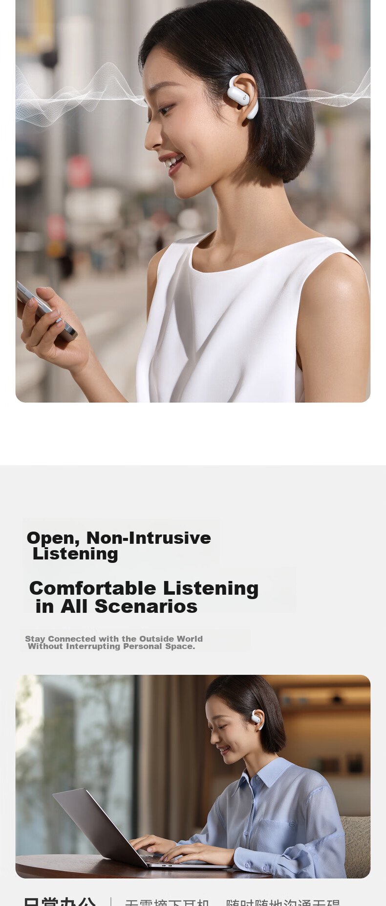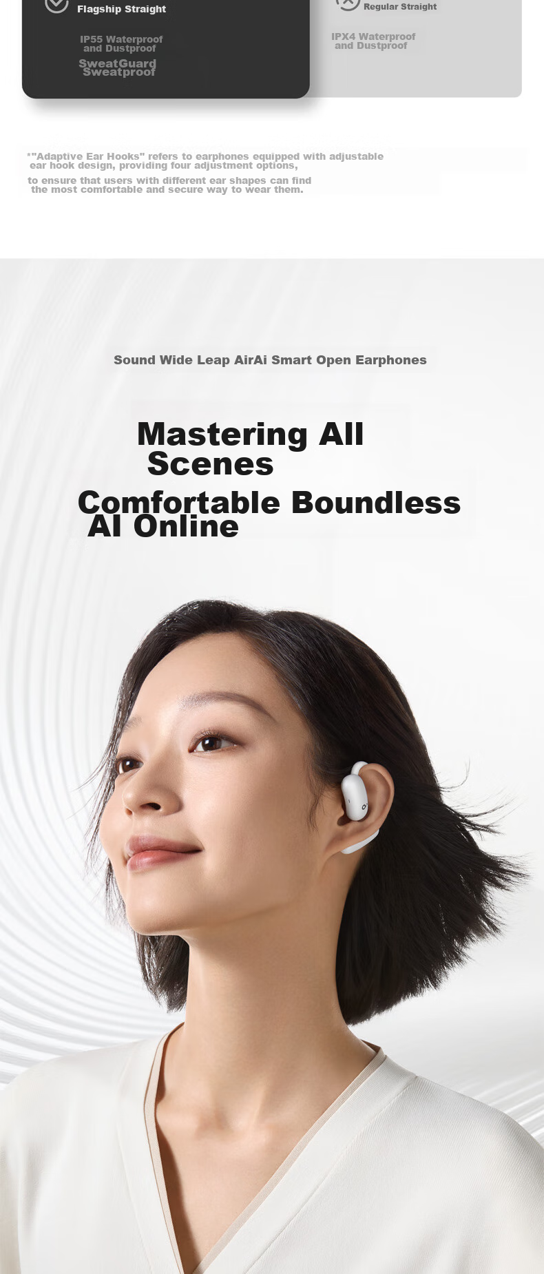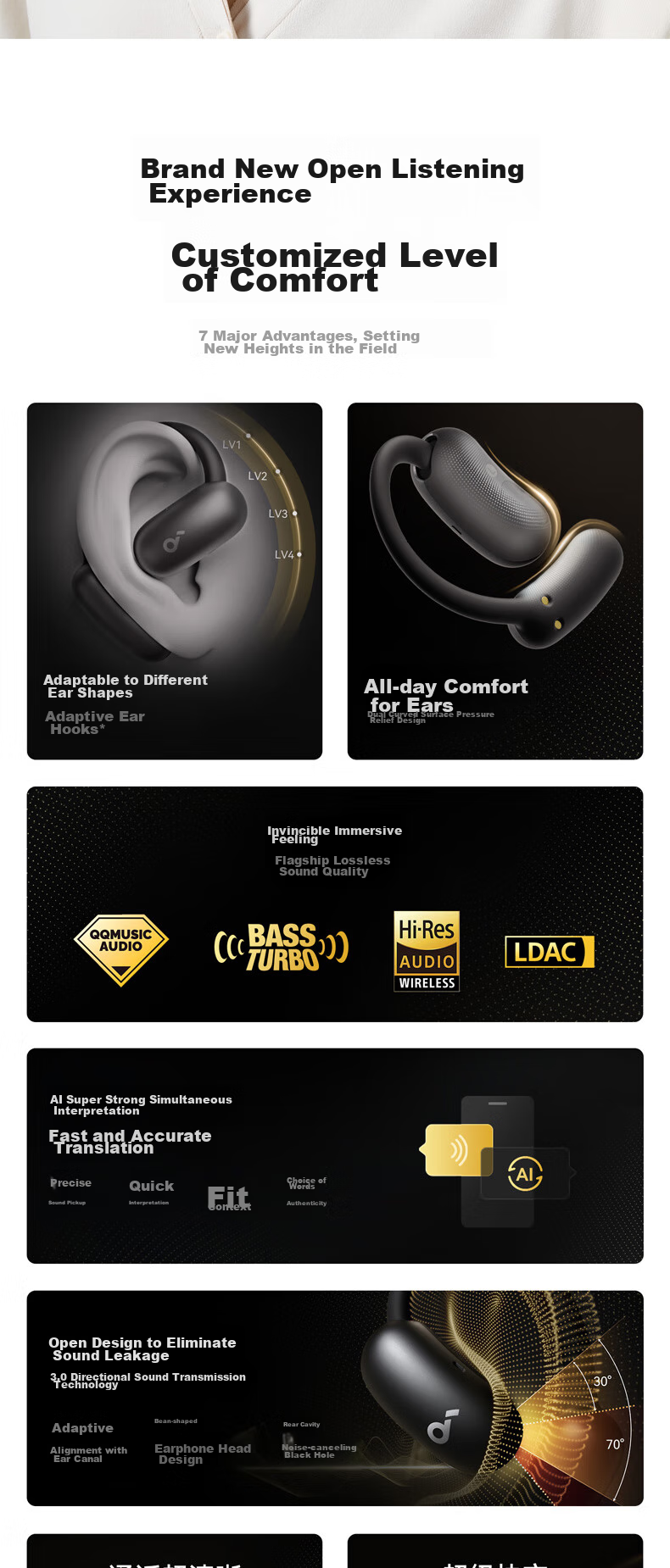 The SoundCore AeroFit 2 earphones feature a unique design with a focus on comfort, stability, and premium sound quality. The innovative BassTurbo chamber enhances bass performance, while the Hi-Res Gold Certification ensures a true-to-life audio experience. With advanced features such as AI translation, directional acoustics, and adaptive ear hooks, these earphones are designed to elevate your listening experience in any environment. The sleek and stylish design, along with customizable EQ settings and touch controls, make the AeroFit 2 a versatile and high-performance audio accessory. Please note that product specifications and features may vary slightly based on testing conditions and software versions. For accurate information, please refer to the actual product.
