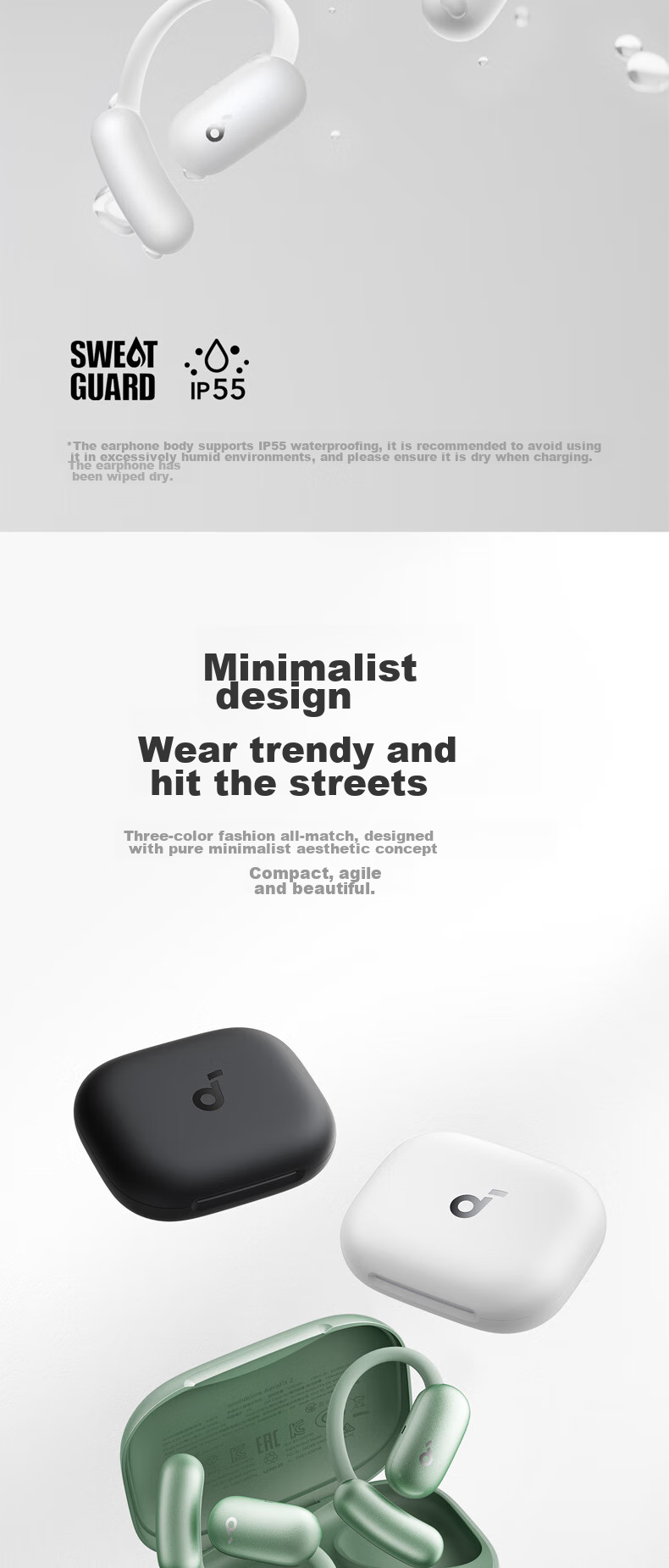 IP55 water and dust resistance with SweatGuard technology