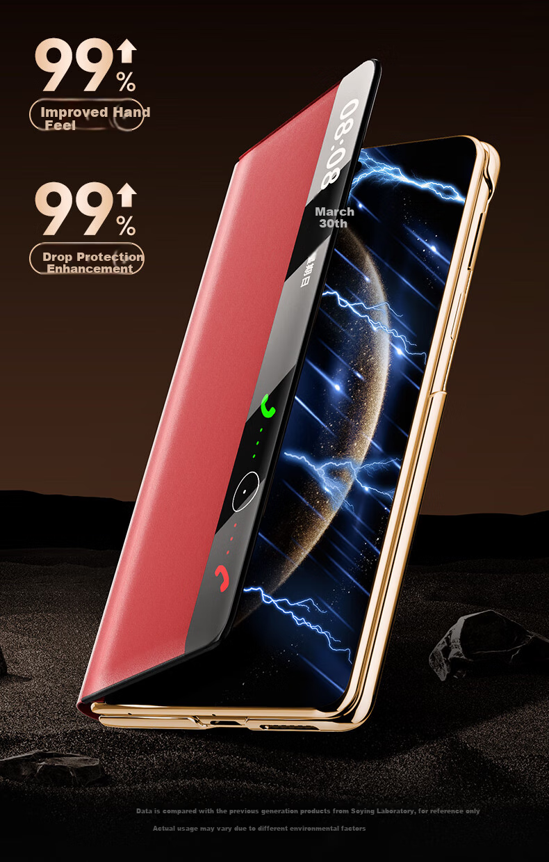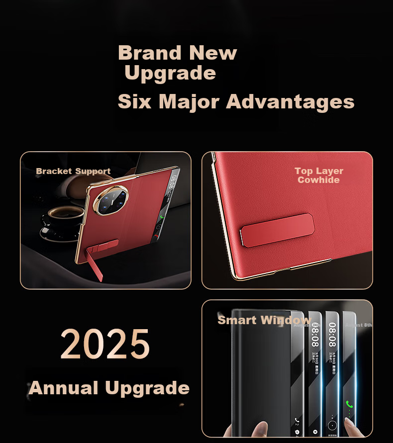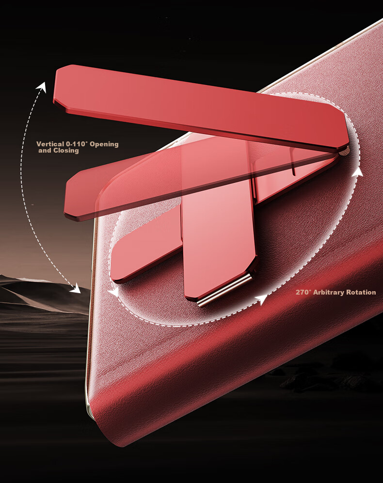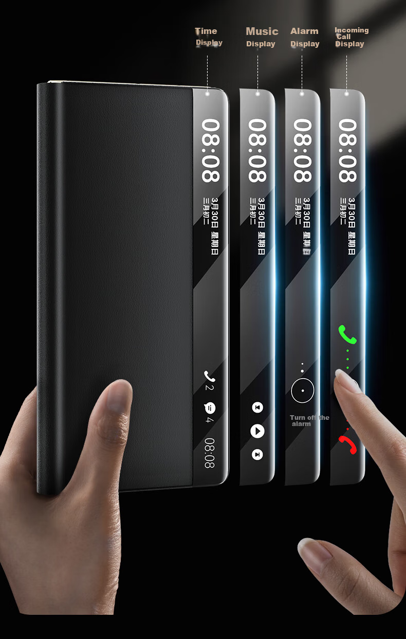 - Six major advantages: stand support, top layer cowhide, smart window, 08:08 display, 270° rotation, 0-110° vertical opening/closing