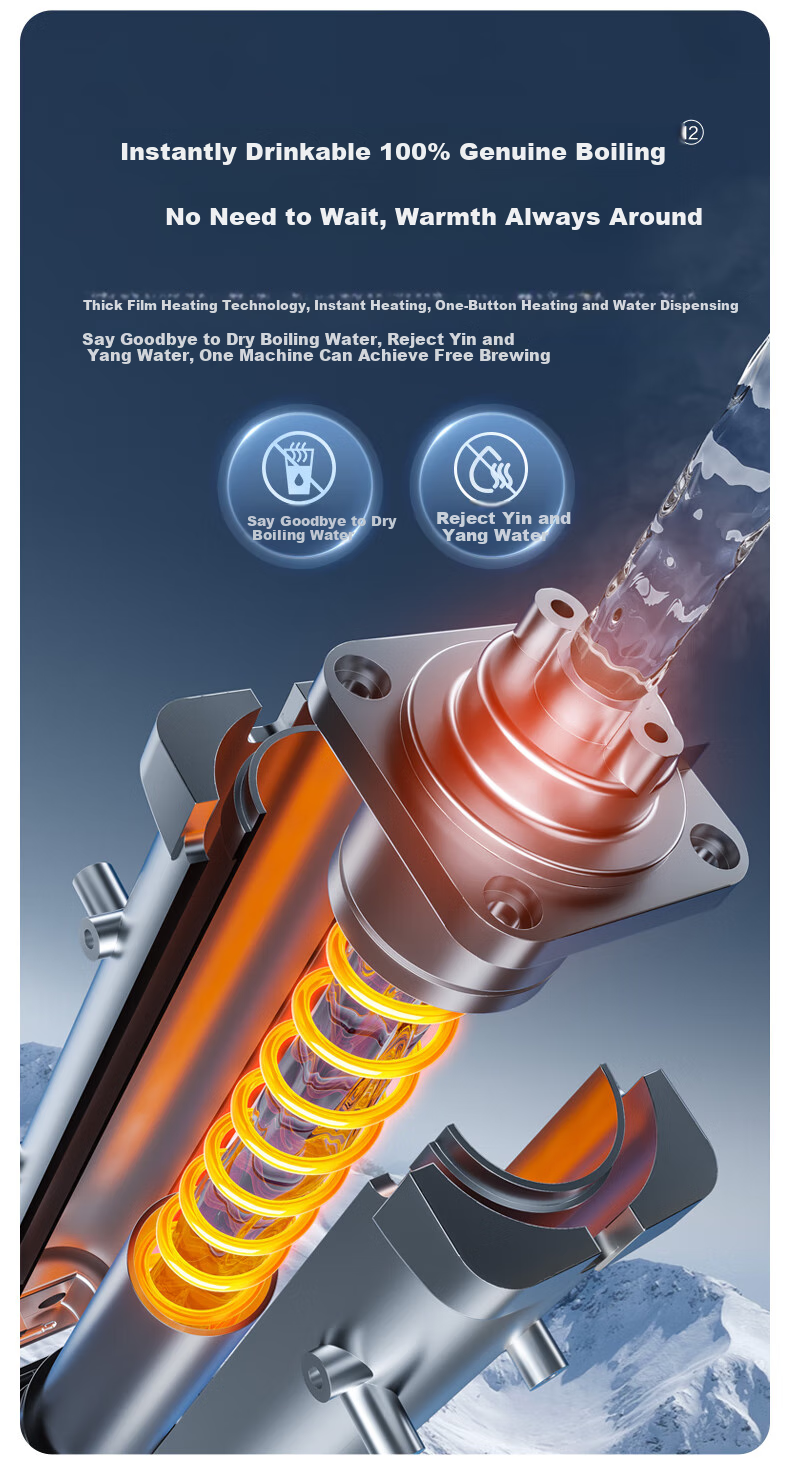 **Heating Technology:** Thick film heating for instant boiling water