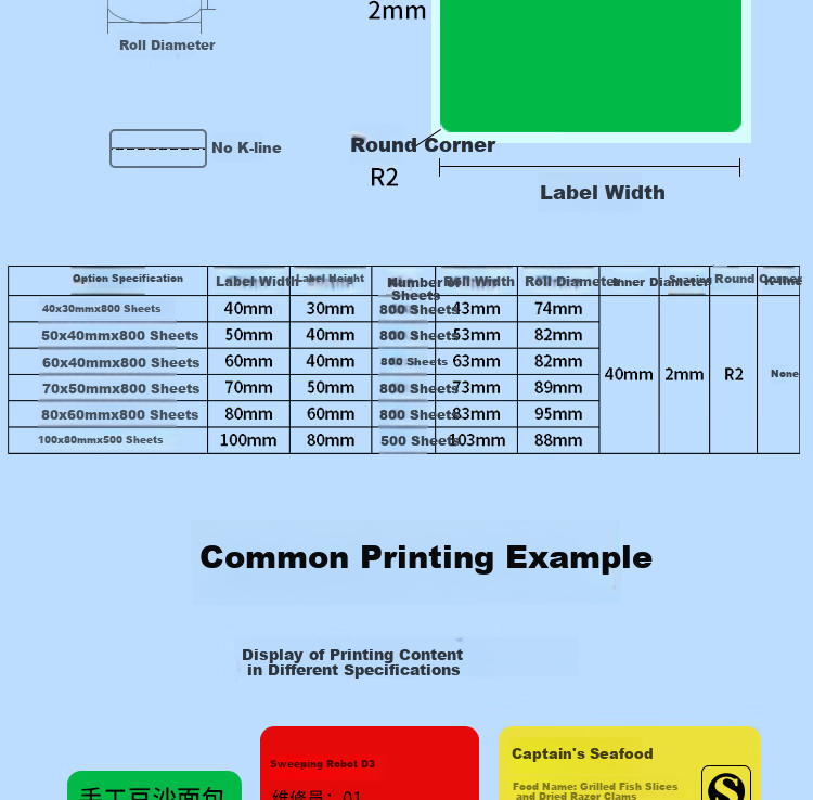 - Suitable for warehouse labels, retail tags, food packaging, etc.