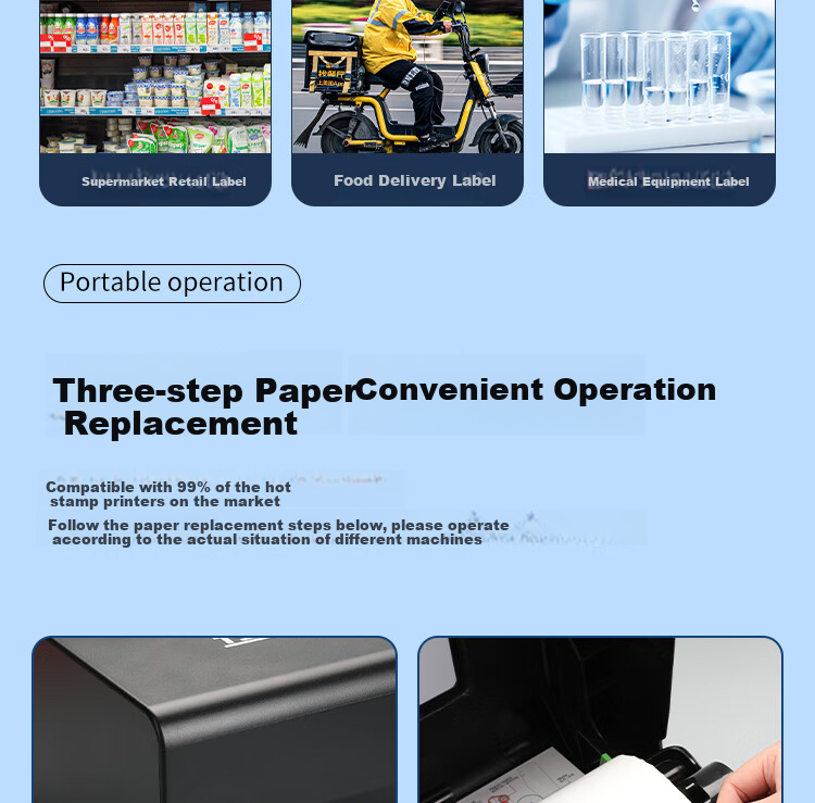 **Note:** The product is designed for various industries and offers convenient and efficient label printing solutions.