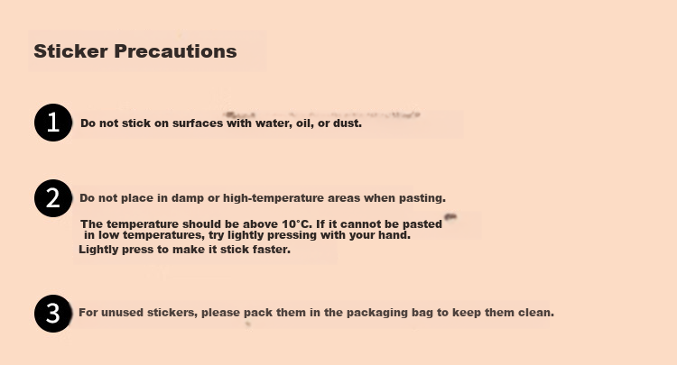 **Usage Precautions:** Do not apply on wet, oily, or dusty surfaces. Store in a dry and cool place. Apply at temperatures above 10°C. If unable to stick in low temperatures, lightly press with hand for better adhesion. Store unused labels in packaging to maintain cleanliness.