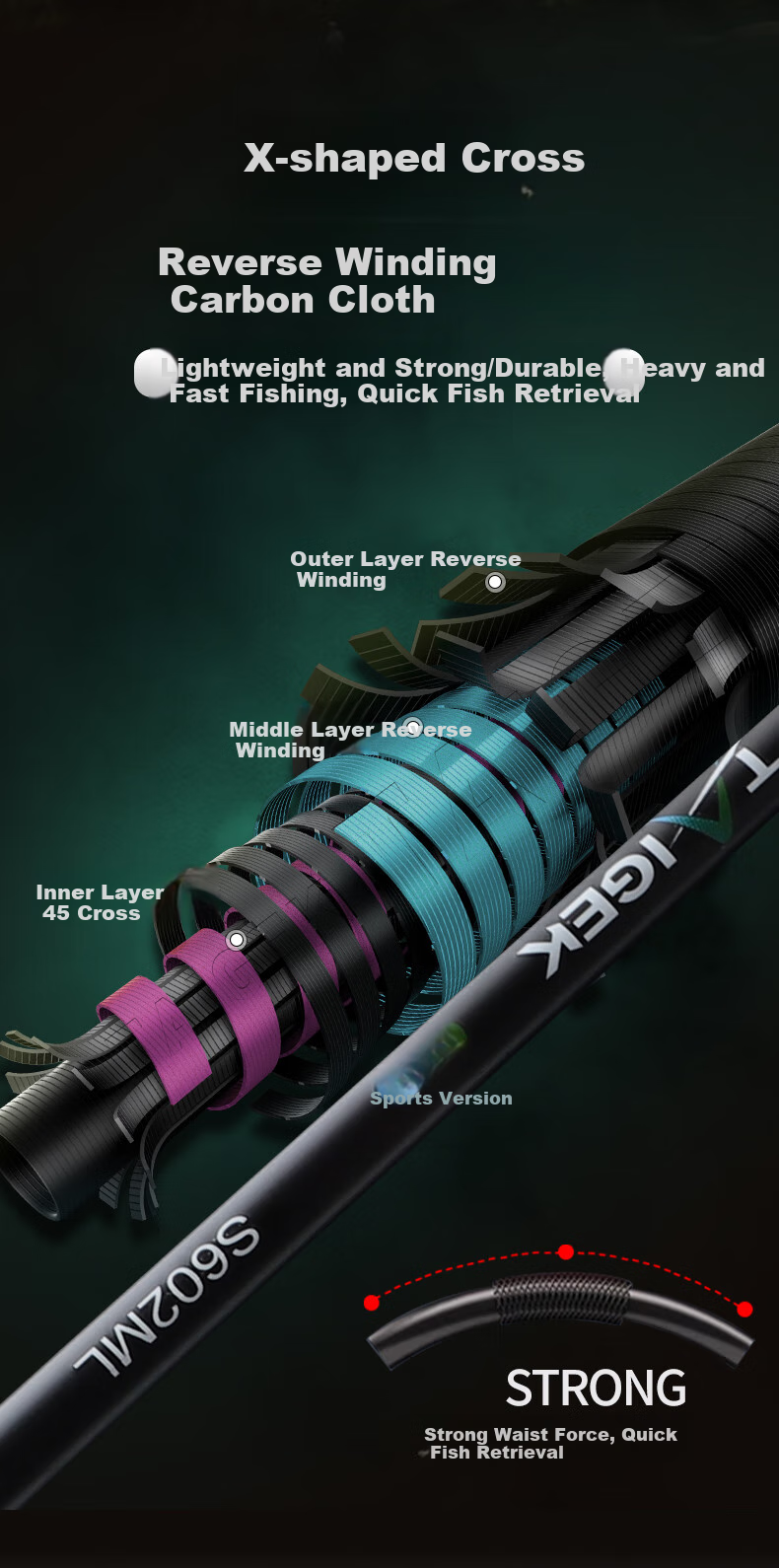 2. High-carbon fiber rod body with strong cross-wrapped wrapping.