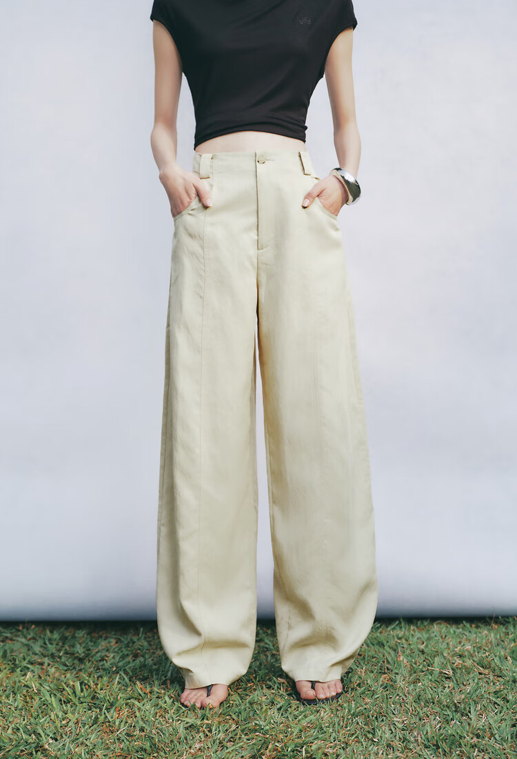 Silhouette: High-waisted wide-leg banana pants