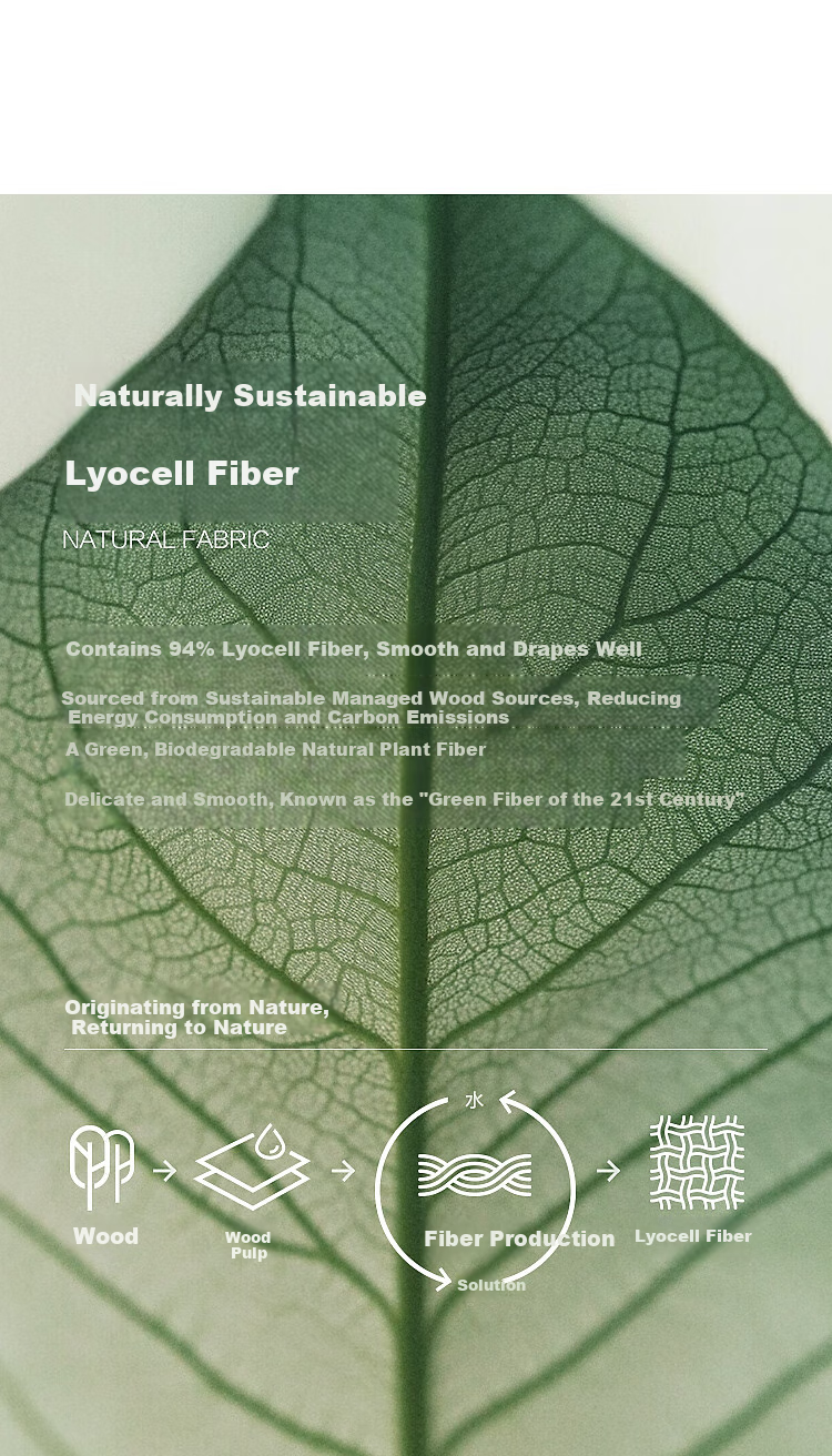 Fabric: 94% Lyocell fiber, known for its smooth texture and sustainable sourcing