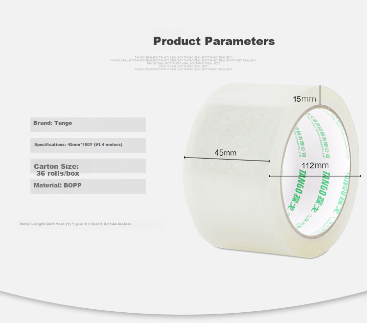 TANGO Clear Packing Tape is designed for efficient sealing and packaging, providing high strength and toughness. The BOPP film material ensures strong adhesion and resistance to stretching. Made with quality materials and advanced processing techniques, TANGO Clear Packing Tape is a reliable choice for all your packaging needs.
