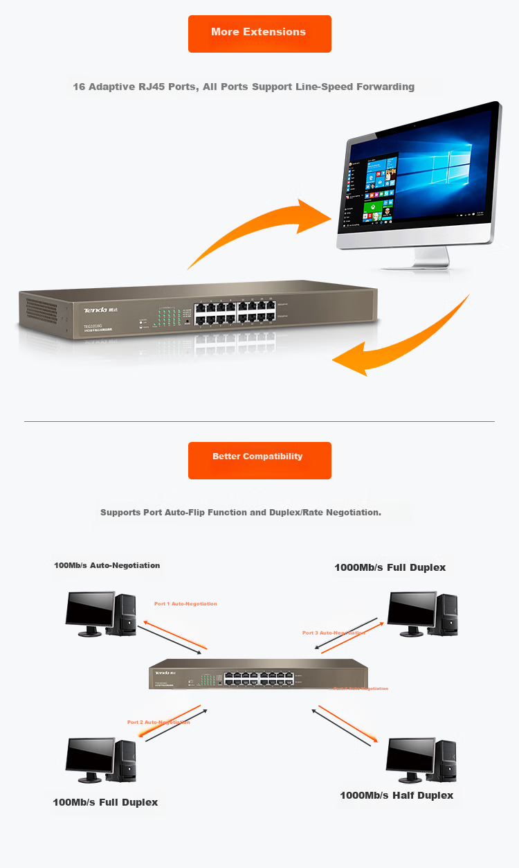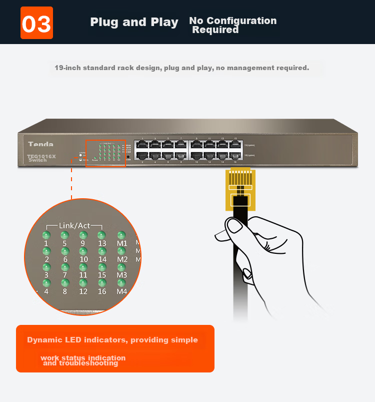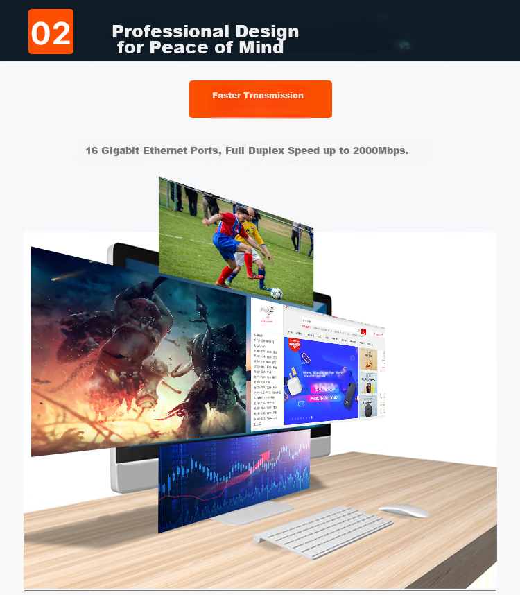 - 16 Gigabit Ethernet ports with full duplex speed up to 2000Mbps