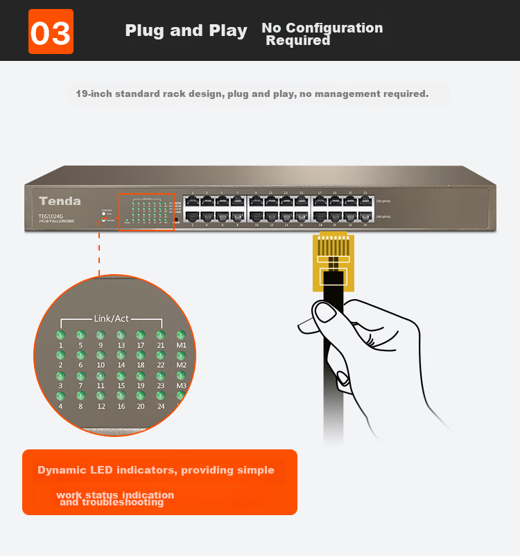 **Compatibility:** Supports port auto-flip function and duplex/rate negotiation