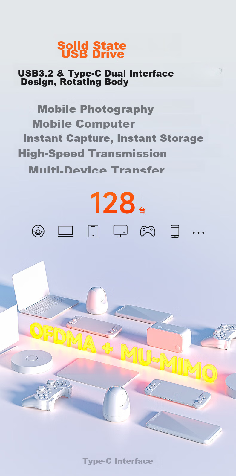 High-concurrency support for up to 128 devices