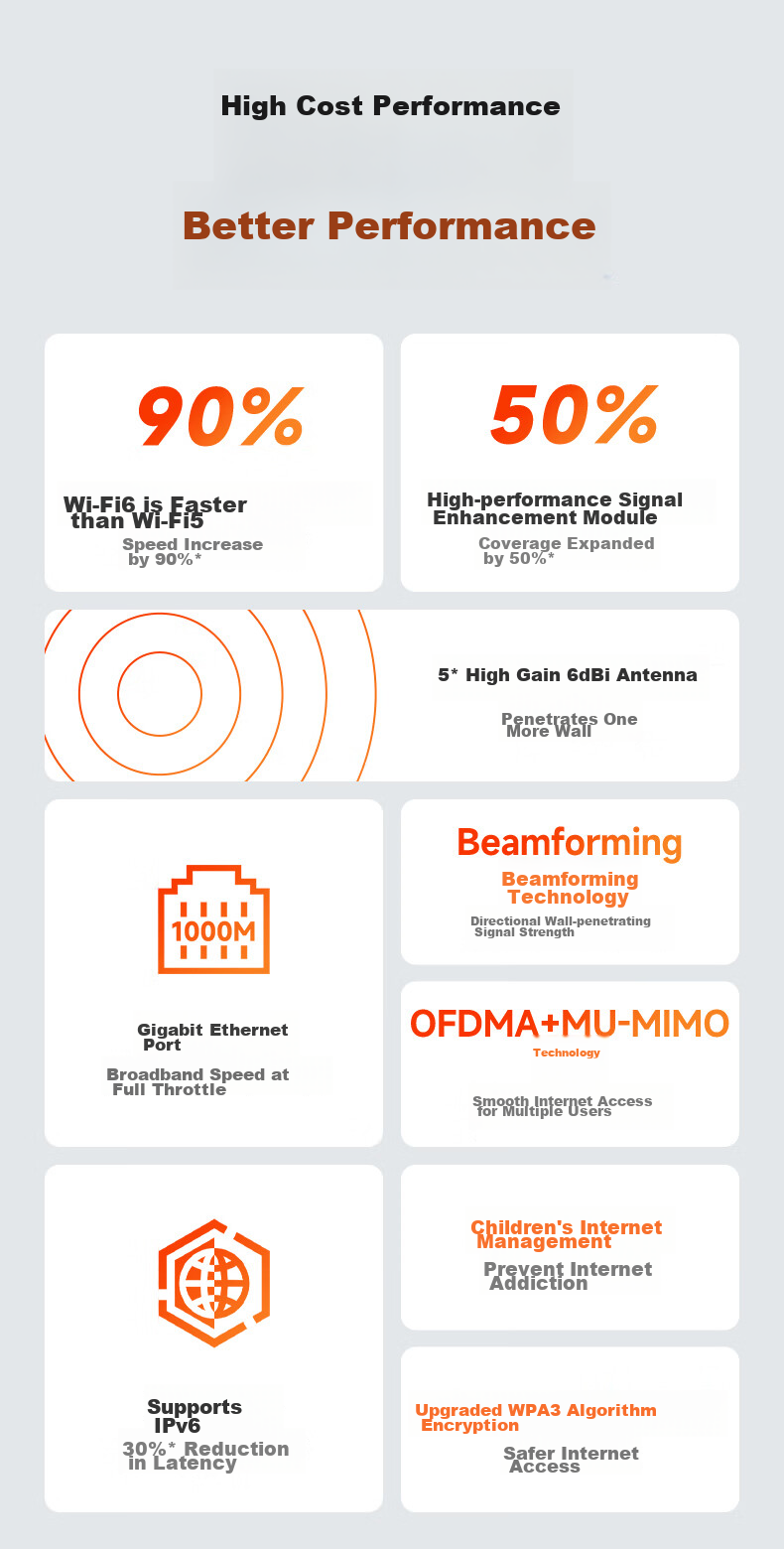 **Features:** Wi-Fi 6, Beamforming technology, OFDMA+MU-MIMO, WPA3 encryption, Parental controls