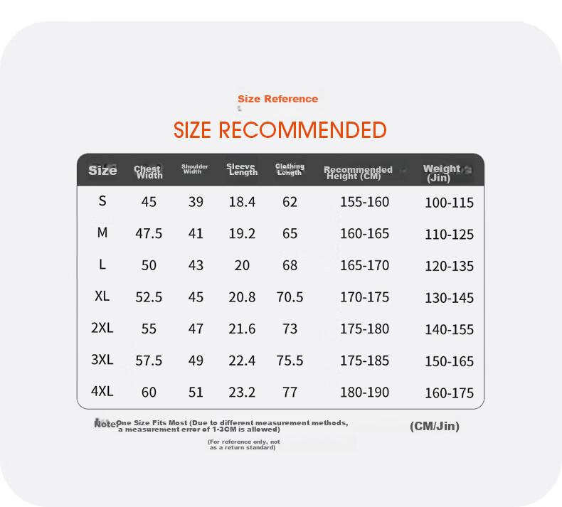 | Size | Chest Width | Shoulder Width | Sleeve Length | Length | Height (CM) | Weight () |