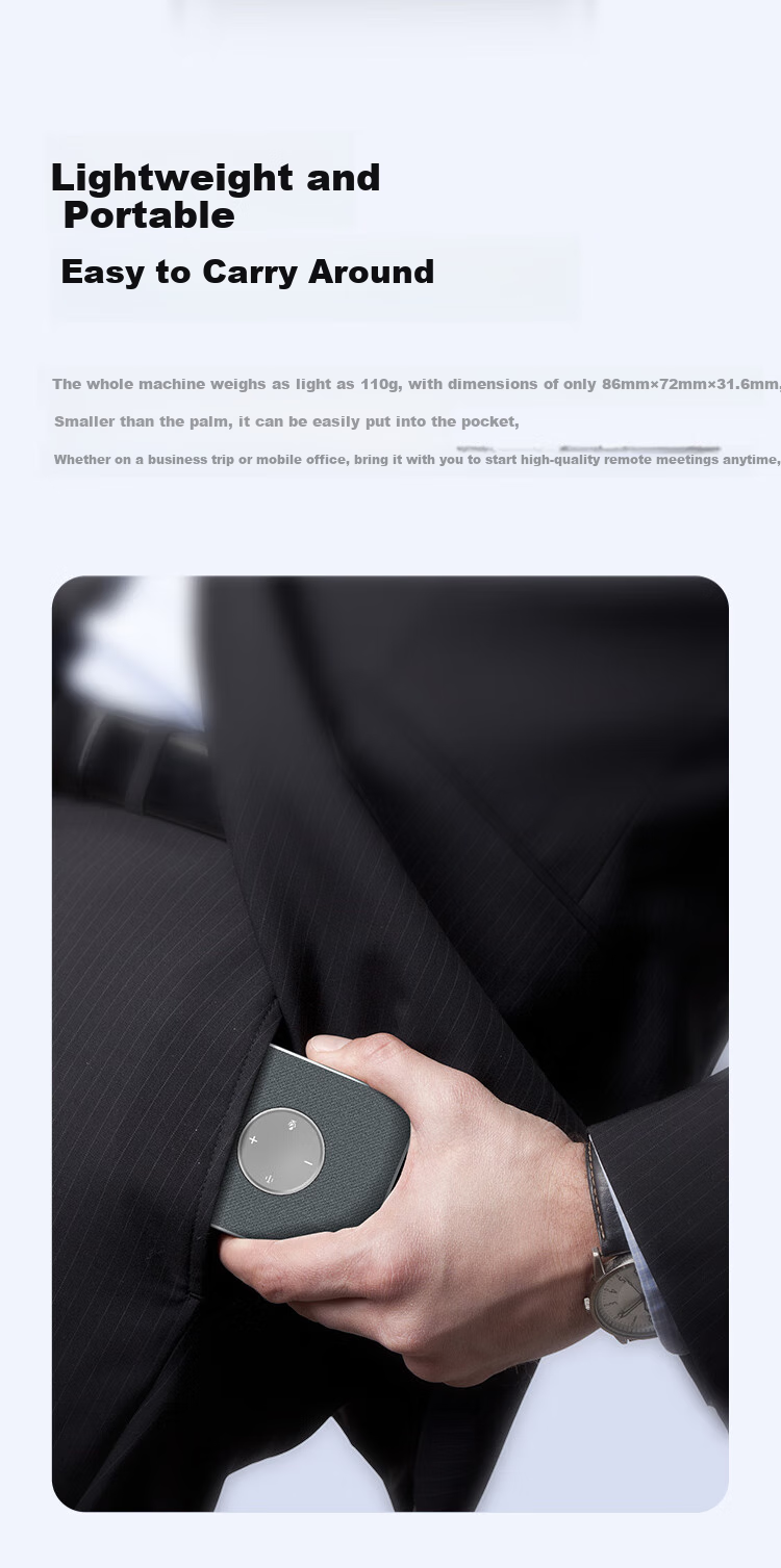 - Supports AI-generated meeting summaries, recording, transcription, translation, intelligent noise reduction, clear communication, and 360° omnidirectional sound pickup.