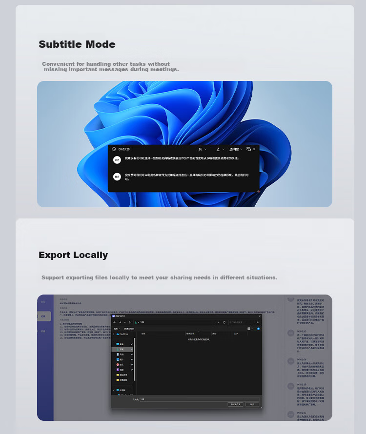 - Subtitle mode for handling other tasks while not missing important meeting information.