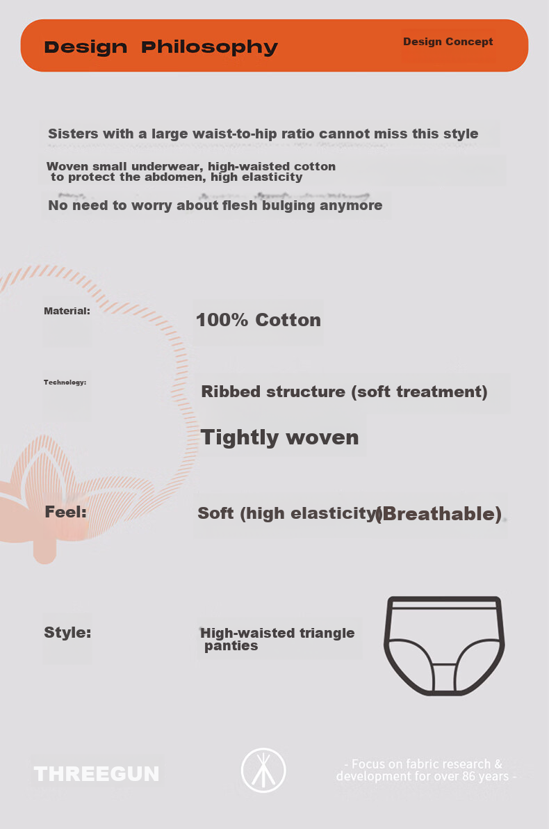 **Design Philosophy:** Designed for sisters with a larger waist-to-hip ratio, these ribbed cotton panties provide high-waist support and comfort for the abdomen. The soft and stretchy fabric ensures no more worries about bulges.