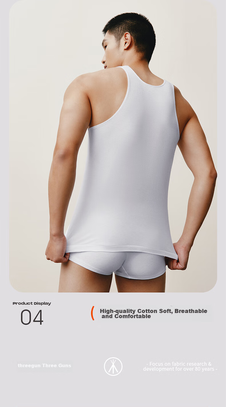 THREEGUN [3-Pack] 100% Cotton Tank Top for Men, White Thin Sports Loose Undershirt Vest