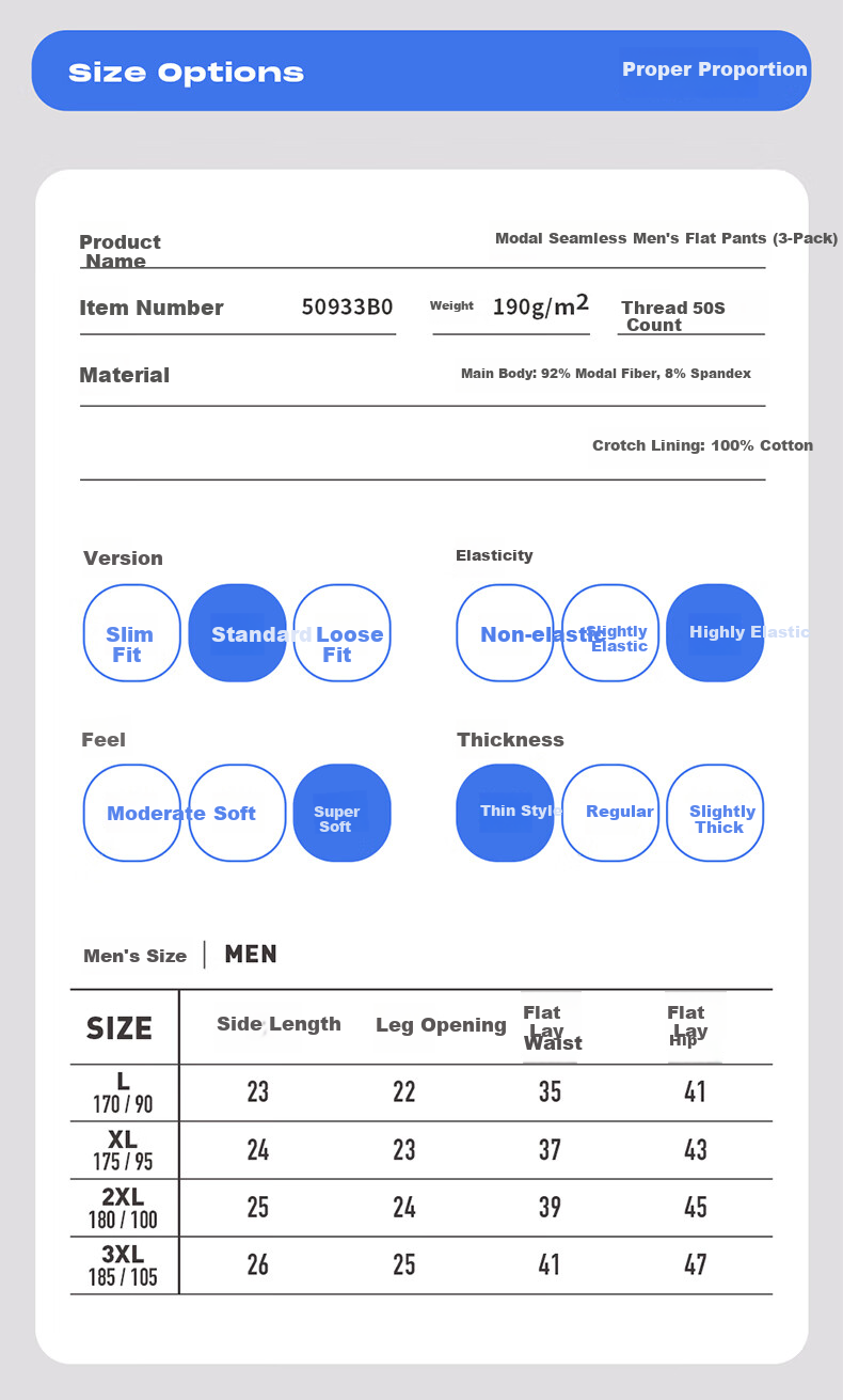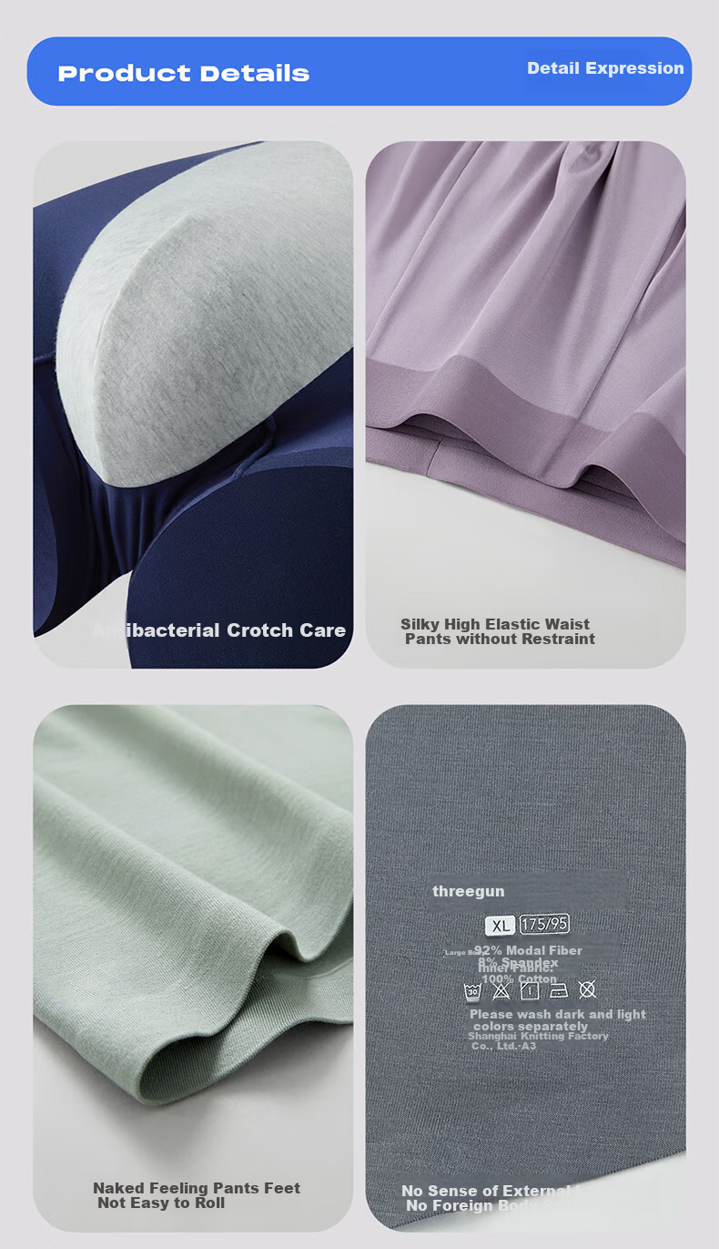 - Material: 92% Modal fiber, 8% spandex for the main body, 100% cotton for the crotch fabric