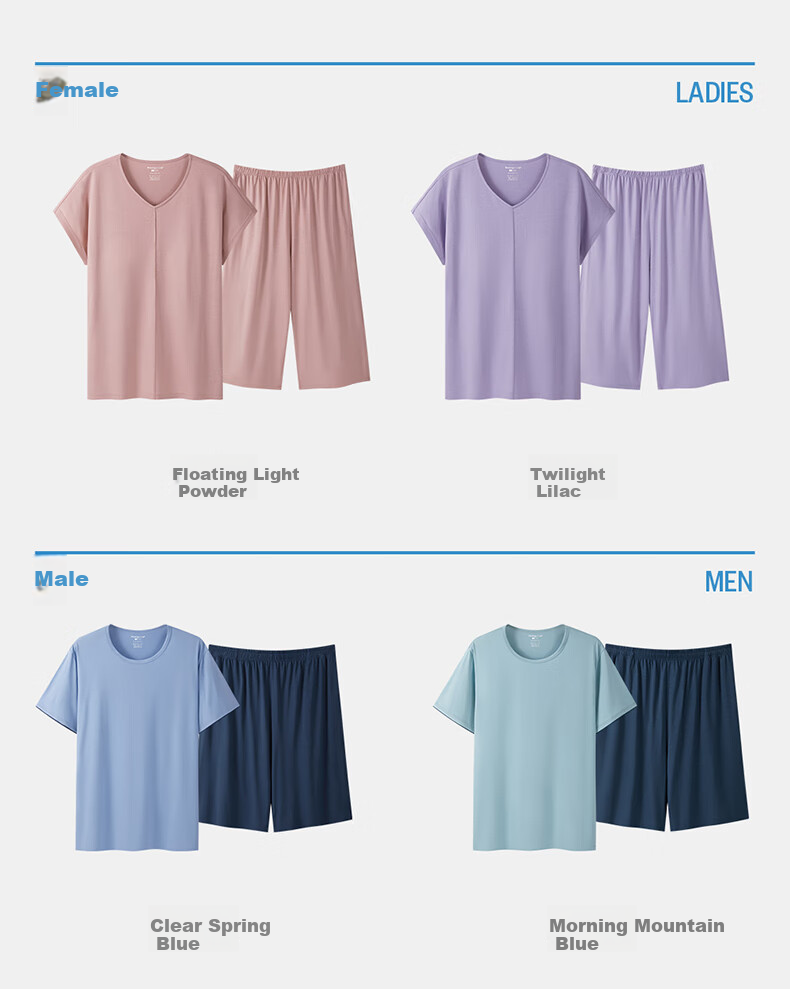 Product Name: Ice Spring Cotton Hidden Striped Short Sleeve Men's and Women's Home Suit