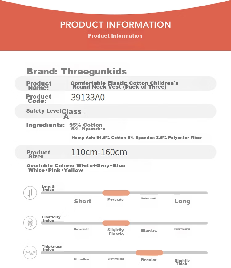 Product Name: Comfortable Elastic Cotton Kids' Round Neck Vest (Pack of 3)
