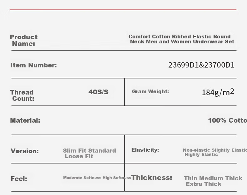 Product Name: Comfort Cotton Ribbed Elastic Round Neck Underwear Set