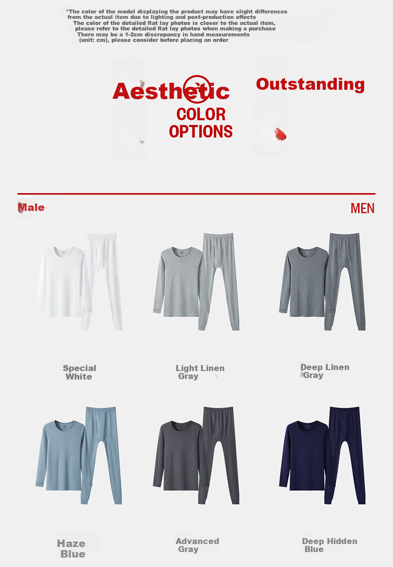 Comfortable round neck, tagless design, elastic waistband, comfortable cuffs