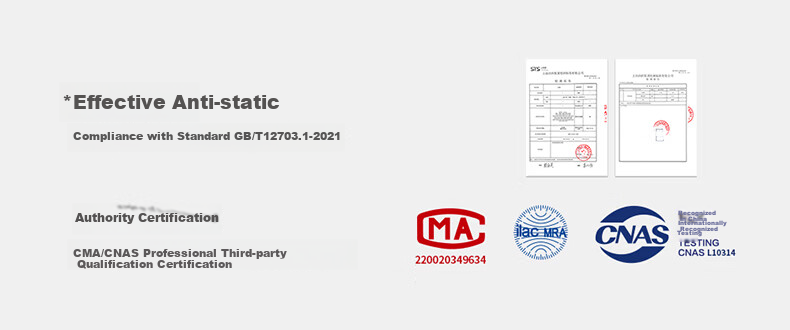 Anti-static: Complies with GB/T12703.1-2021 standards