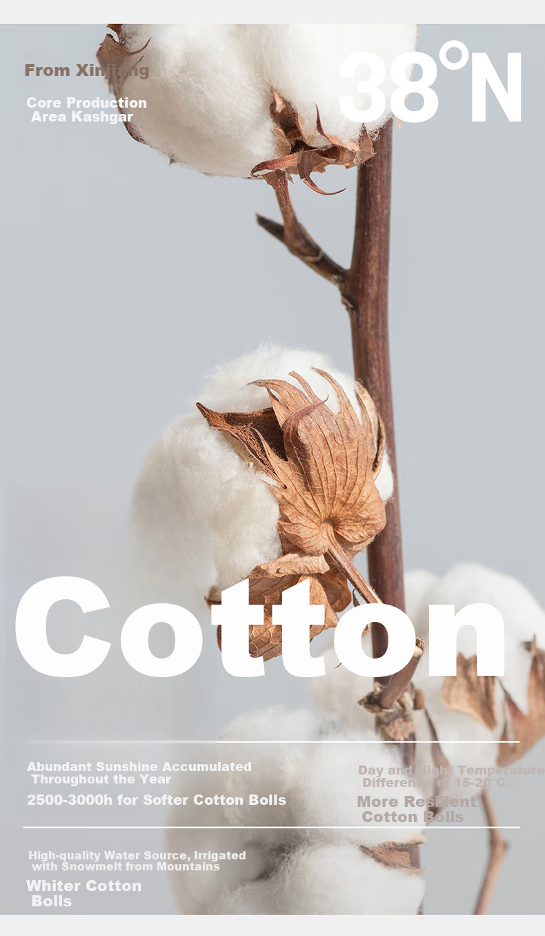 - 38N cotton from the core production area of Kashgar, Xinjiang