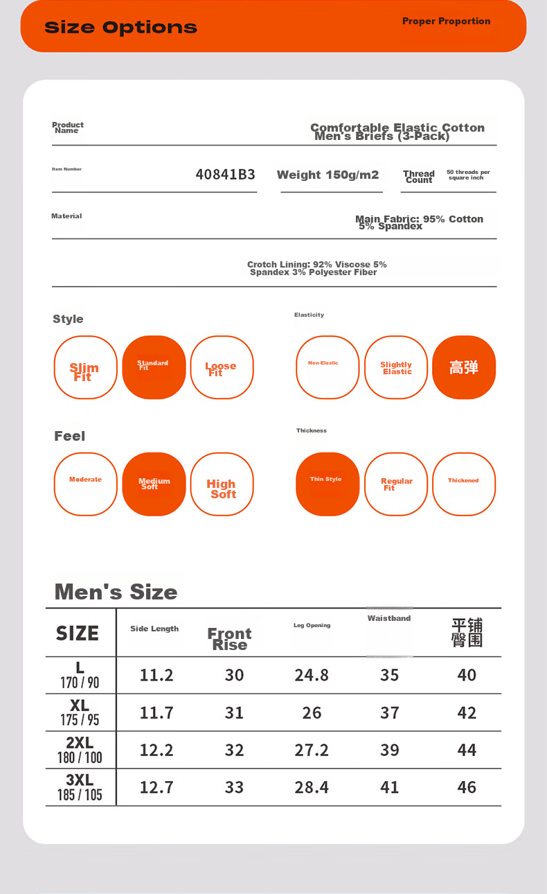 **Product Name:** Comfort Stretch Cotton Men's Briefs (3-pack)
