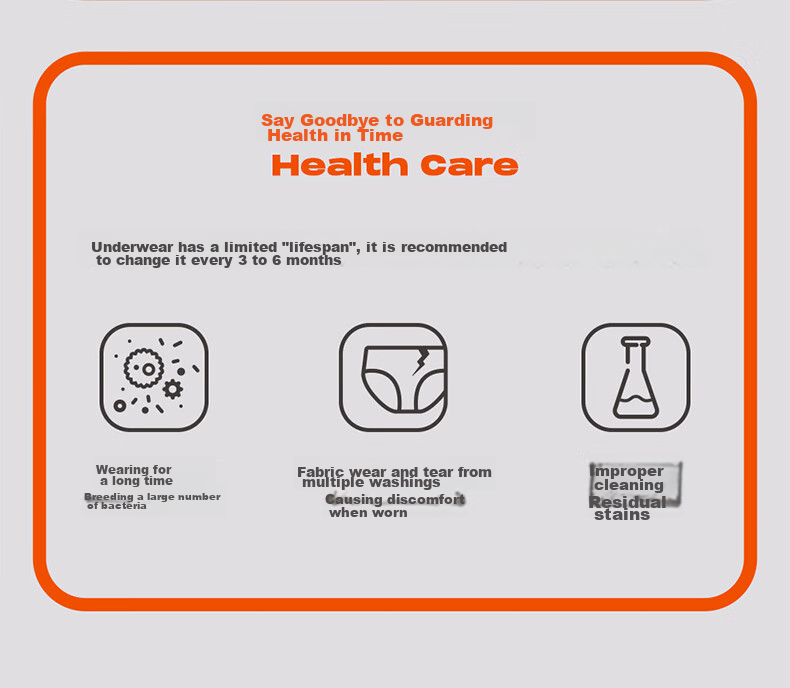 **Health Care:** Emphasizes the importance of changing underwear every 3 to 6 months for hygiene and comfort.