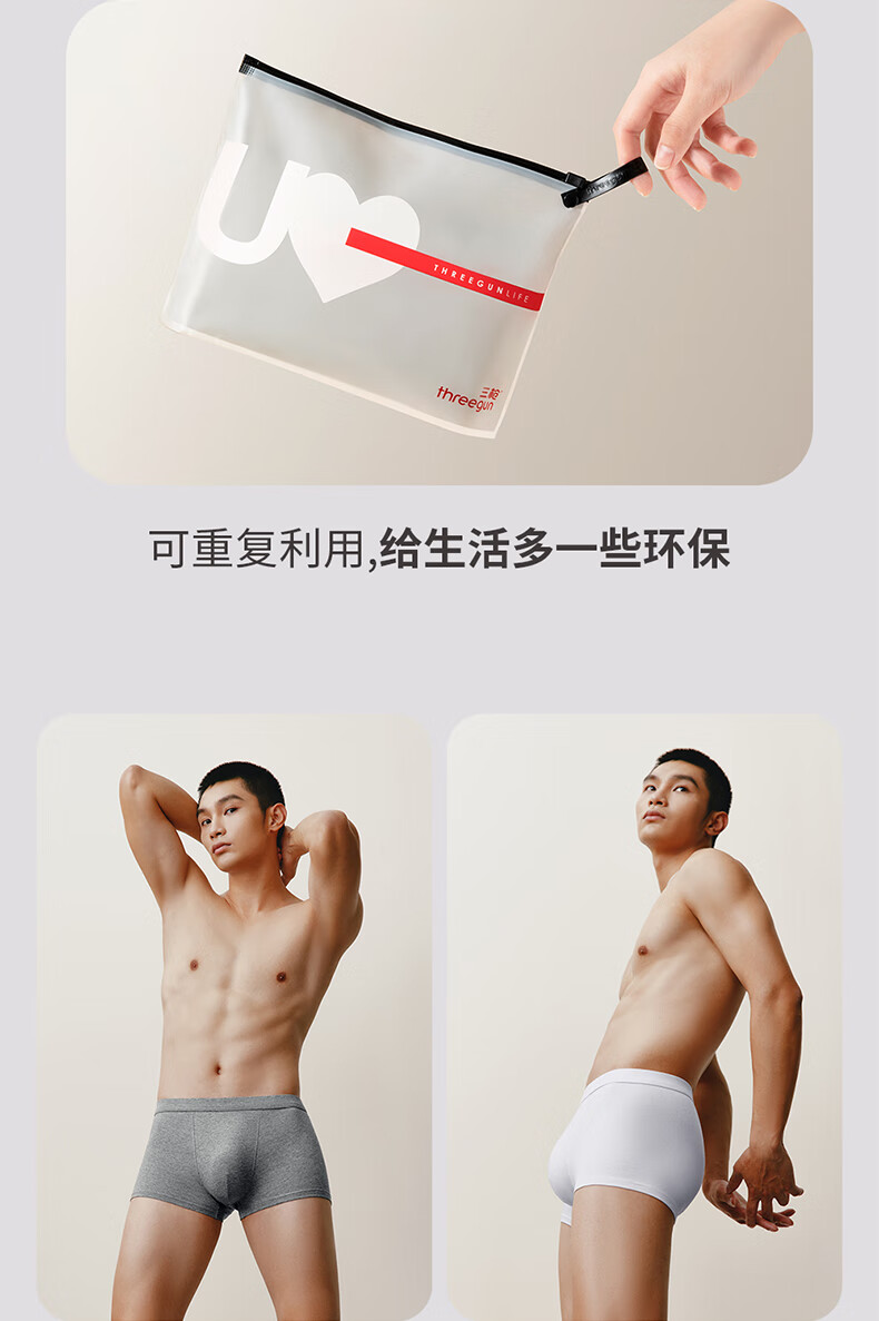 THREEGUN Men's Underwear Xinjiang Cotton Antibacterial Elastic Breathable Boxer Briefs Men's Flat Angle Underwear 3-Pack