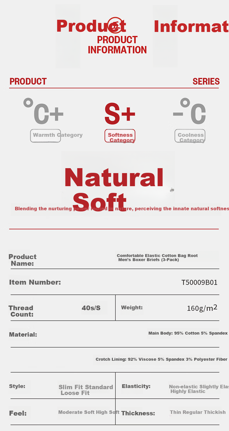 **Product Name:** Men's Elastic Cotton Boxer Briefs (3-Pack)