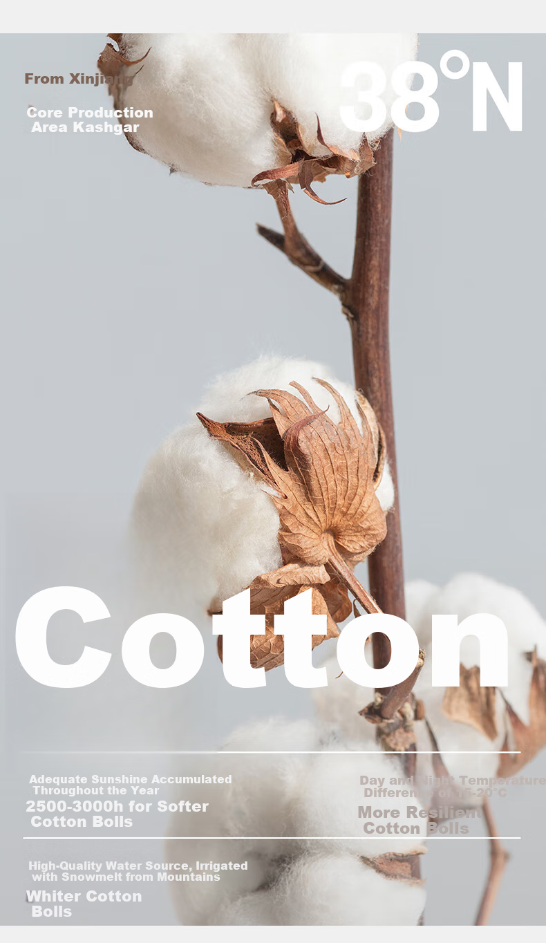 **Water Source:** High-quality water source from snowmelt in the mountains, resulting in whiter cotton fibers