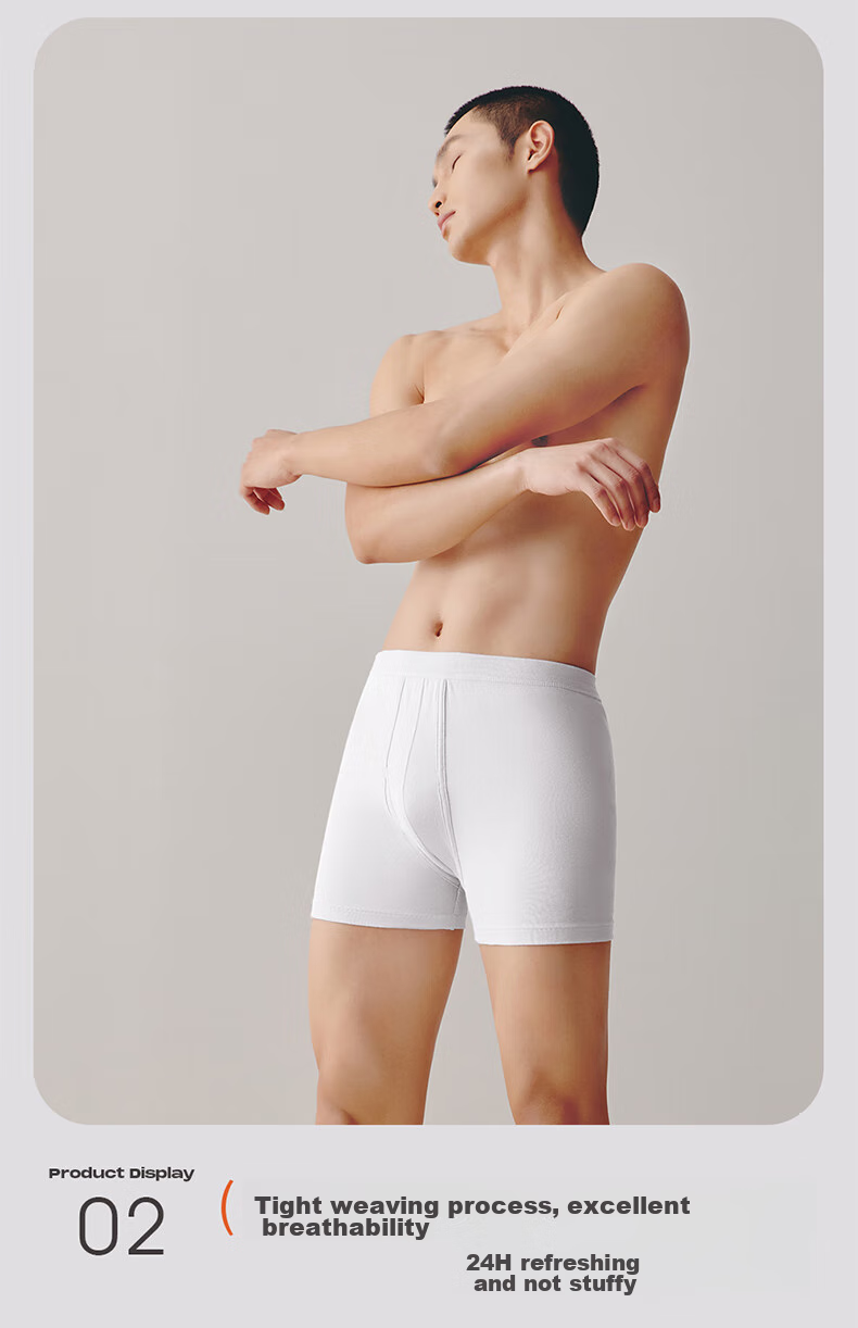 THREEGUN [Pure Cotton Loose Fit] Men's Boxer Briefs, Breathable Shorts, High-Waist Large Size Boxer Shorts [Pack of 3]