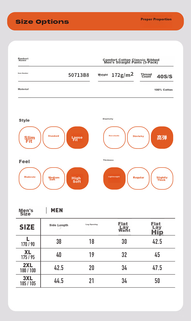 - Product Name: Classic Ribbed Men's Flat Pants (3-pack)