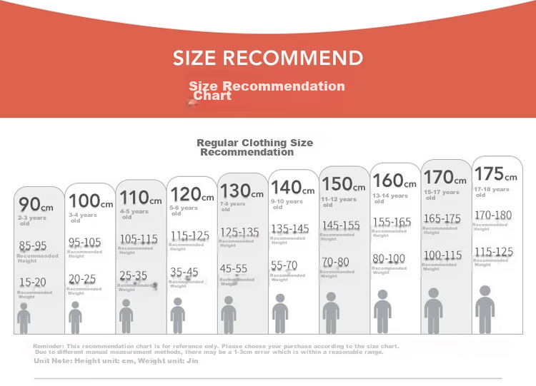 - 2-18 years old, various height and weight recommendations