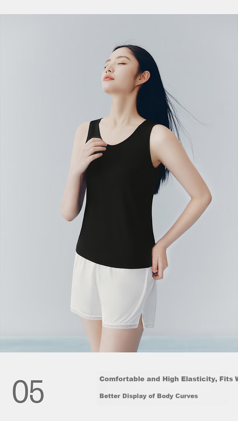 Material: Carbonized modal fiber, elastic fiber, cool feeling technology, antibacterial and mite-proof, moisture-wicking