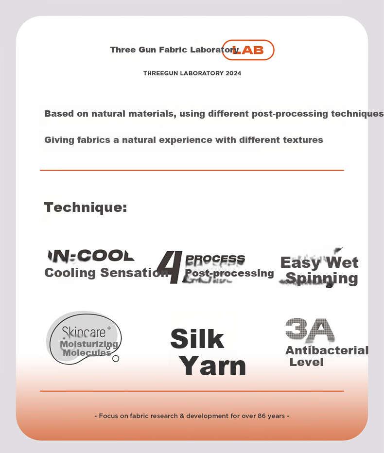 Technology: IN-COOL 4 PROCESS, wicking, silk yarn, Skincare O-level antibacterial treatment