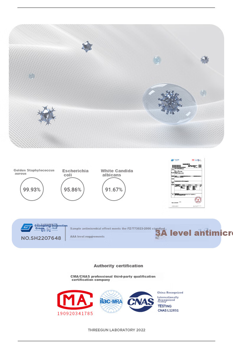 - Tested by Guangdong Inspection Group (GTTC) to meet FZ/T73023-2006 standards