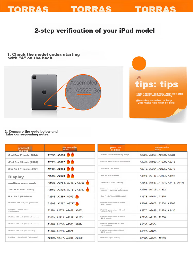 - iPad Pro 11-inch (2020): A2228, A2068, A2230, A2231