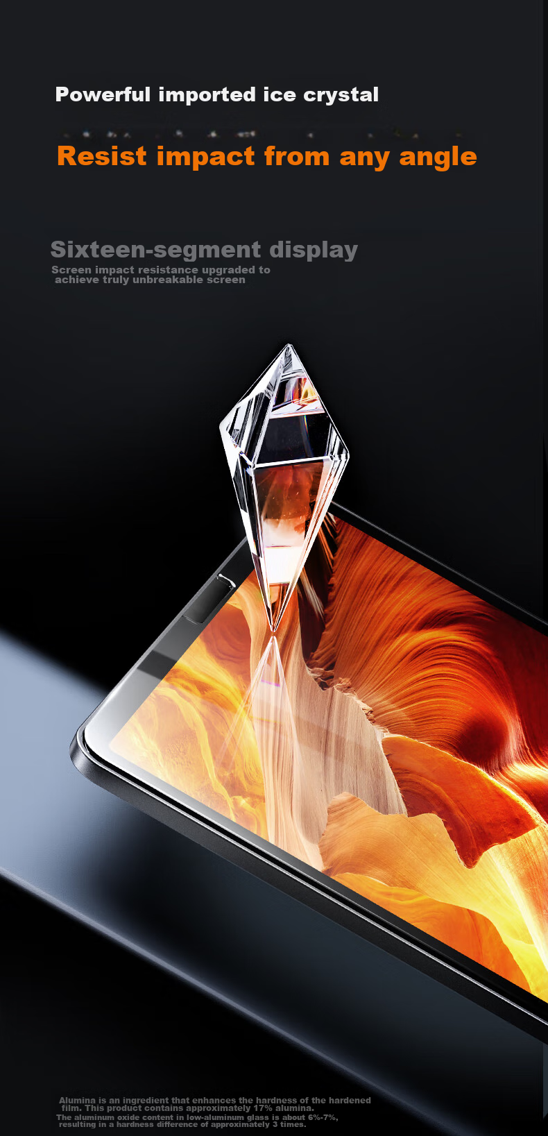 - Enhanced screen durability with 17% aluminum oxide alloy
